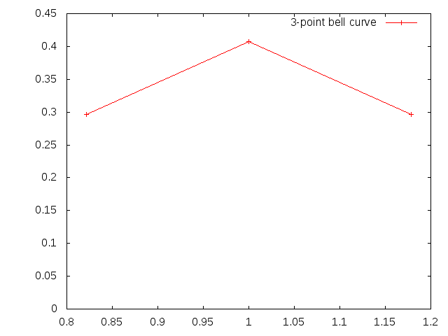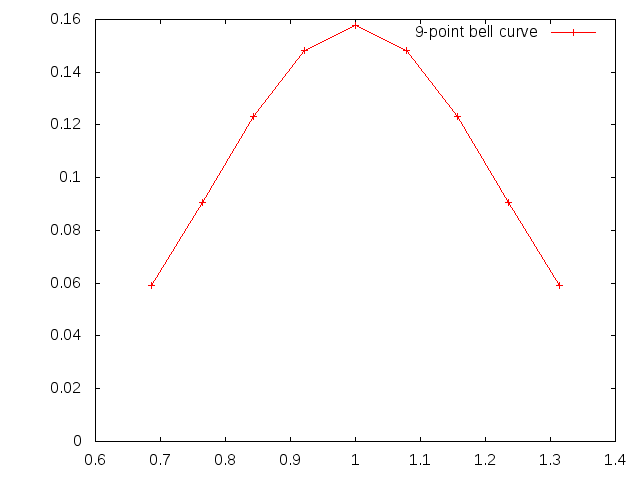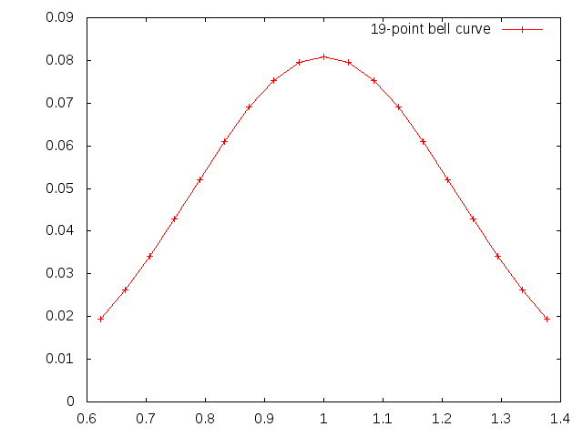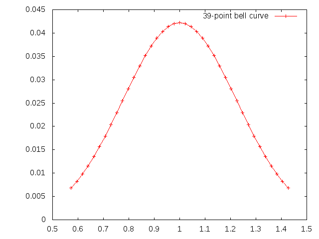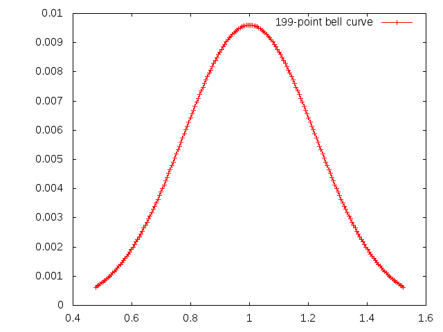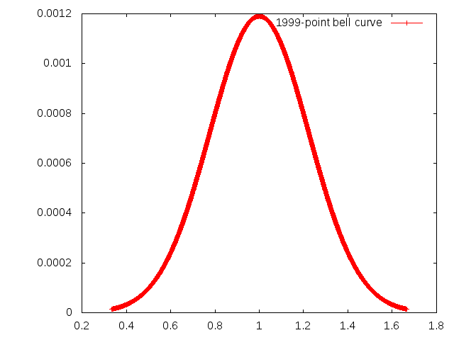 Okay, we are plotting sine waves. What we do is we add a bunch of sinewaves together. The sinewaves are all clustered around a central frequency (1.0) in such a way as to fit a normal distribution curve (bell curve).