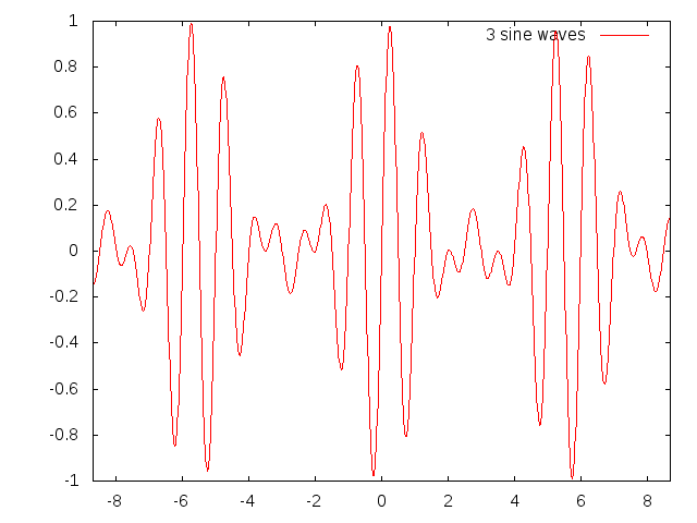 So here is one with 3 sinewaves...one at the central frequency and one on either side. It demonstrates a beat note: